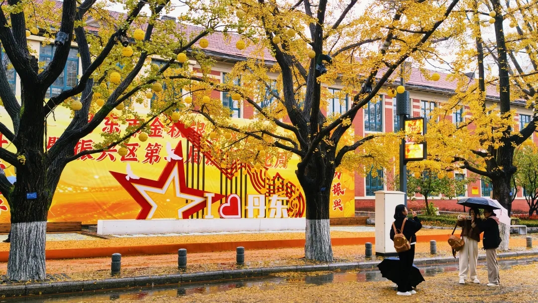 ??“听说丹东的银杏大道比画还美,今天冒雨前来,果然名不虚传。这趟来得值!”从沈阳专程赶来的李女士兴奋不已。一位市民感慨道:“雨中的景色比晴天多了一份宁静和深沉,仿佛能听到历史的声音。”